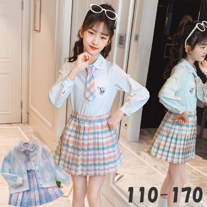 入学式 女の子 かわいい 長袖 スカート リボン付き 120-170 カーディガン 2点セット 3点セット セット 学生制服 キッズ服 フォーマル セーラー おしゃれ キッズ 卒業式 卒園式 子供服