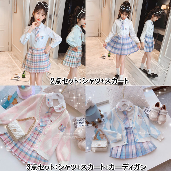 入学式 女の子 かわいい 長袖 スカー キッズ ボトムス スカート 豊富な品揃え ピンク/2点セット ブルー/2点セット ピンク/3点セット ブルー/3点セット 110 120 130 140 150 160 170