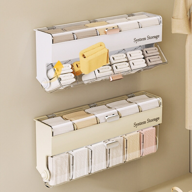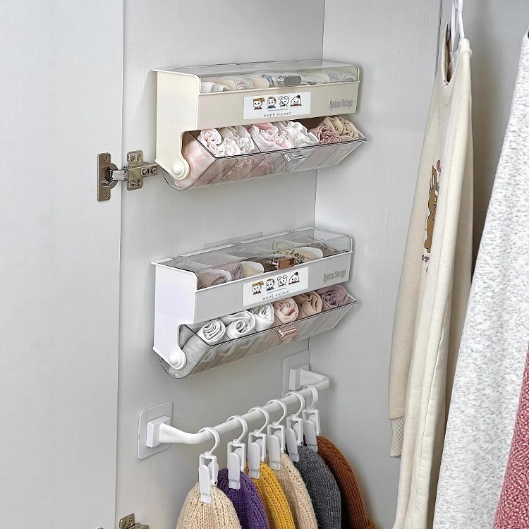 下着収納ケース 収納ボックス 壁掛け ベージュ ホワイト