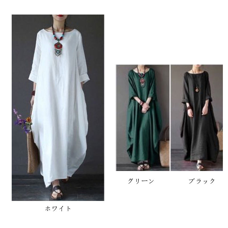 ワンピース 春 ロング ロングワンピー ワンピース 超目玉商品 ホワイト グリーン ブラック M L XL 2XL