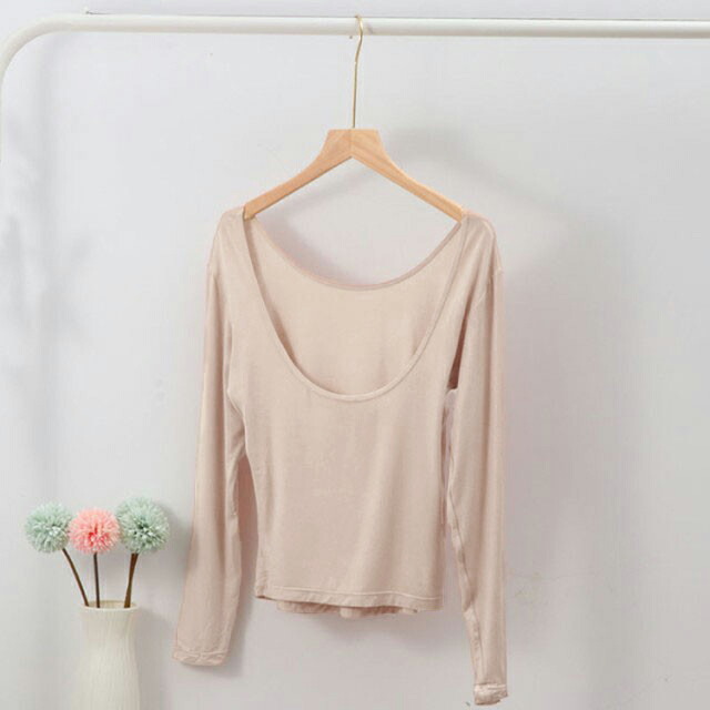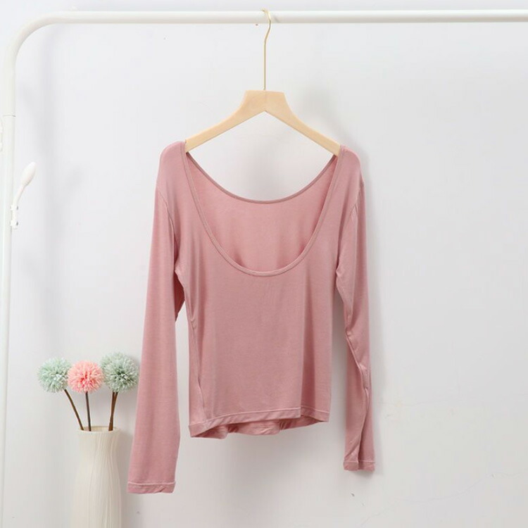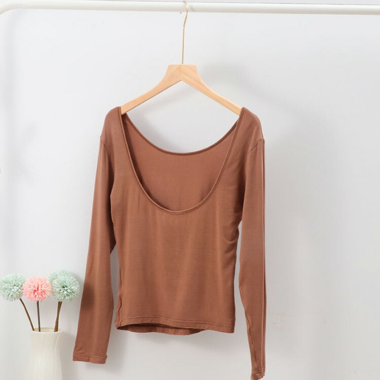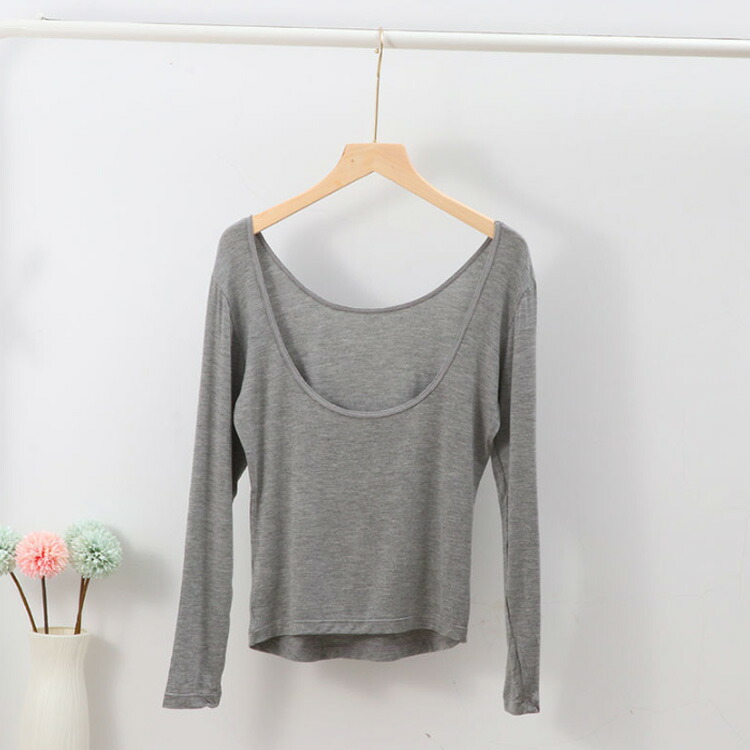 深開き Tシャツ 長袖 バックオープン レディースファッション 通販 ブラック(ラウンドネック) ホワイト(ラウンドネック) グレー(ラウンドネック) ベージュ(ラウンドネック) ピンク(ラウンドネック) コーヒー(ラウンドネック) ブラックUネック ホワイトUネック グレーUネック ベージュUネック ピンクUネック コーヒーUネック S M L XL 2XL