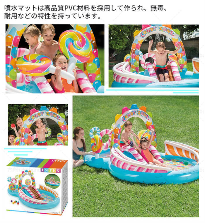 .プールマッ の 噴水おもちゃ として 人気 の 噴水プール フルーティー プレイセンター は 滑り台 や ウォーターマット を 備えた ビニールプール 用 の プレイマット です。夏 の 水遊び や 屋外 の レジャー に 最適 で 幅広い 年齢層 に 対応 しています。。