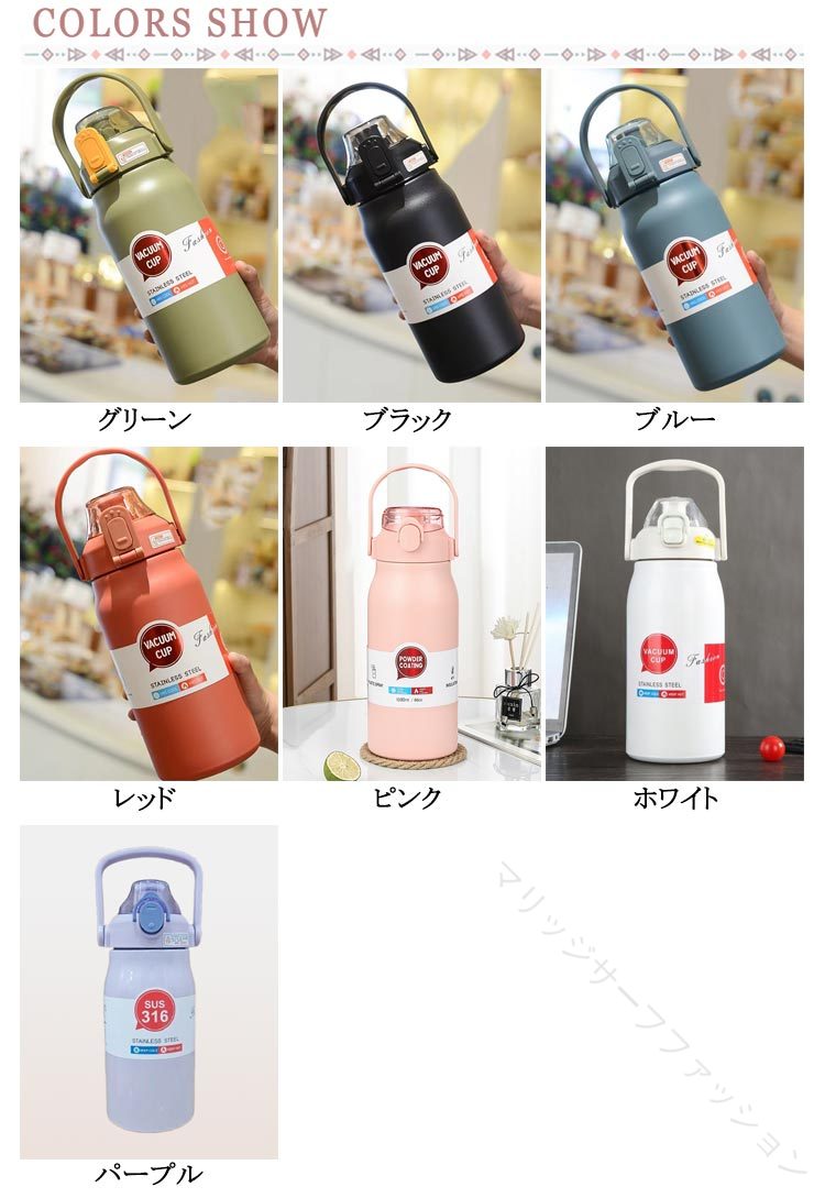 保温 水筒 スポーツ 用 直飲み スト キッチン用品 食器 調理器具 通販 グリーン ブラック ブルー レッド ピンク ホワイト パープル 1000ml 1200ml 1500ml 1800ml
