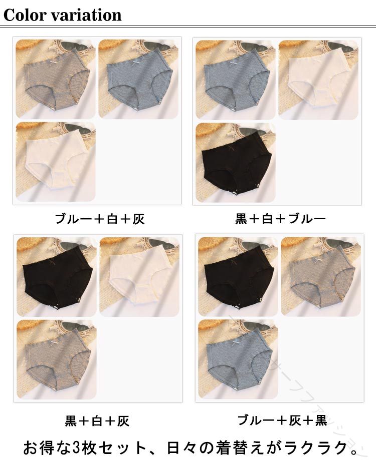 かわいい インナー 無地 ショーツ 3 レディース インナー 下着 ショーツ スタンダード 人気 ブルー+白+灰 黒+白+ブルー 黒+白+灰 ブルー+灰+黒 M3枚セット L3枚セット XL3枚セット