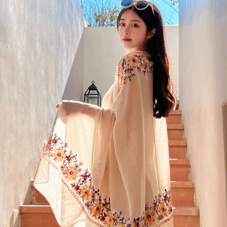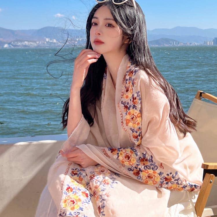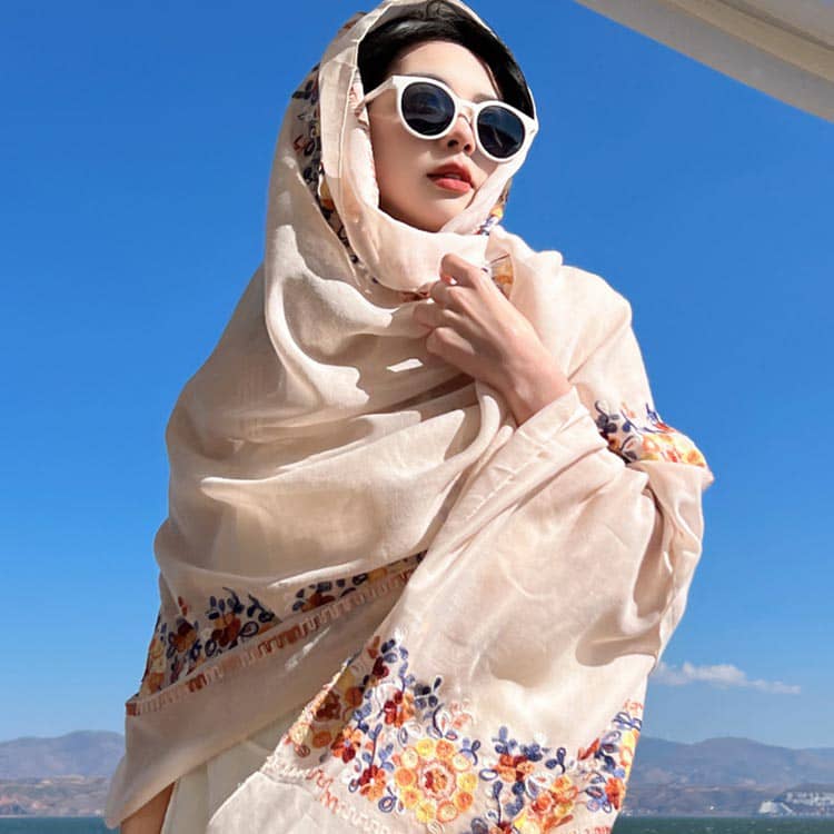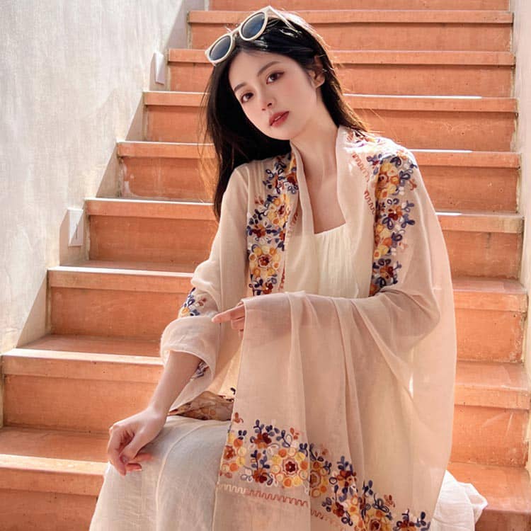 ストール 大判 花柄 刺繍 マフラー バッグ 小物 ブランド雑貨 特集 ワインレッド ネイビー ベージュ ホワイト
