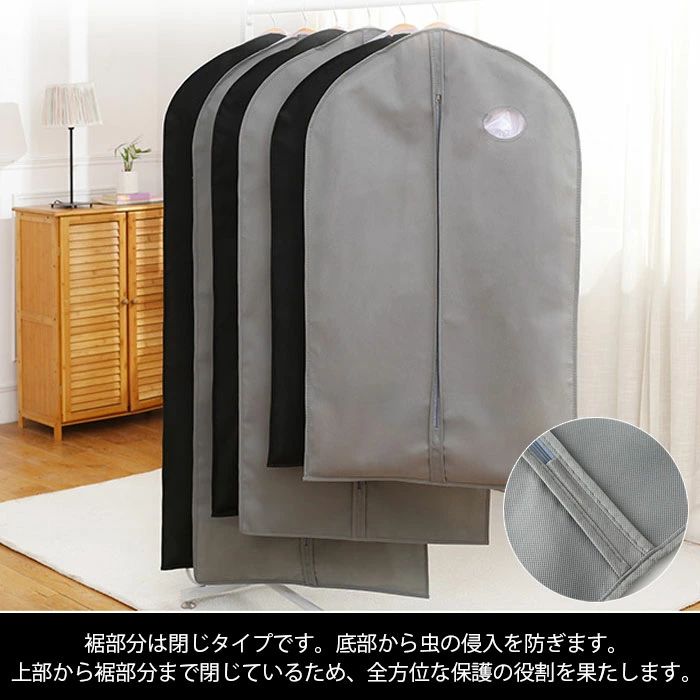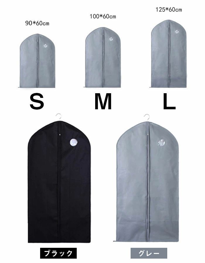 衣類カバー 洋服カバー 衣装カバー不織 バッグ ガーメントバッグ ケース 人気 ブラック グレー カーキ S(3枚) M(3枚) L(3枚) S(1枚)+M(1枚)+L(1枚)