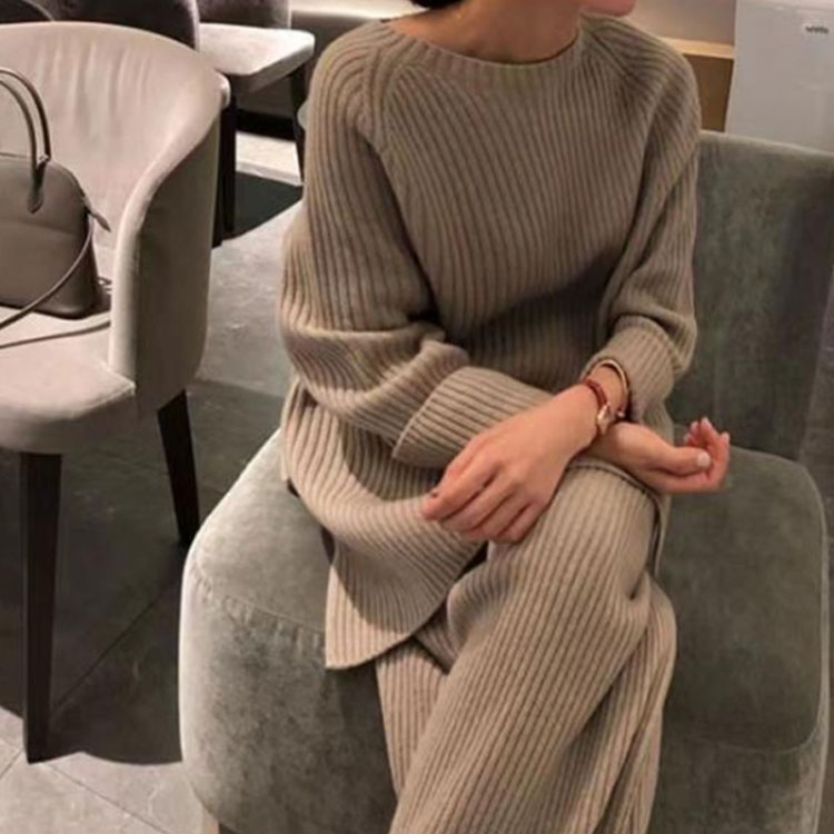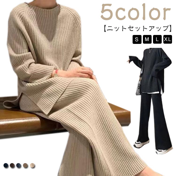 セットアップ 無地 ニット 長袖 カジ レディースファッション 特集 ブラック コーヒー ダークブルー キャメル ベージュ S M L XL