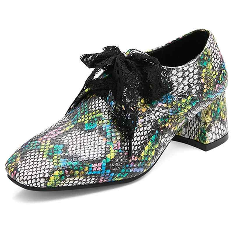 パンプス レディース パイソン柄 厚底ヒール フラットトゥ 大きめサイズ 欧米スタイル スネークプリント スタイリッシュ 日常使い ローヒール 女性用 シューズ 太めヒール 丸トゥ ビッグフィ 蛇皮風