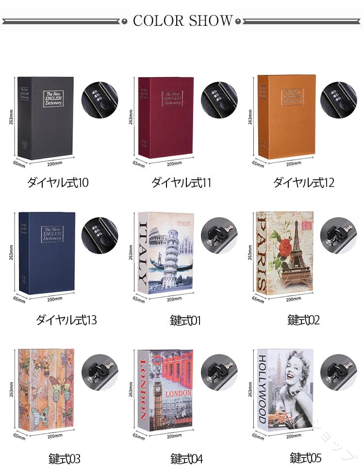 隠し 金庫 ブック型 本型金庫 小型 01 02 03 04 05 06 07 08 09 10 11 12 13 S(鍵式) M(鍵式) L(鍵式) S(ダイヤル式) M(ダイヤル式) L(ダイヤル式)