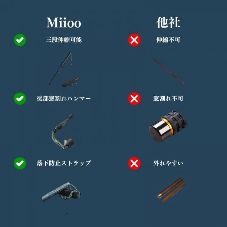 3段伸縮式 護身用スティック 窓割れハ スポーツ アウトドア 人気 普通タイプ 長いタイプ