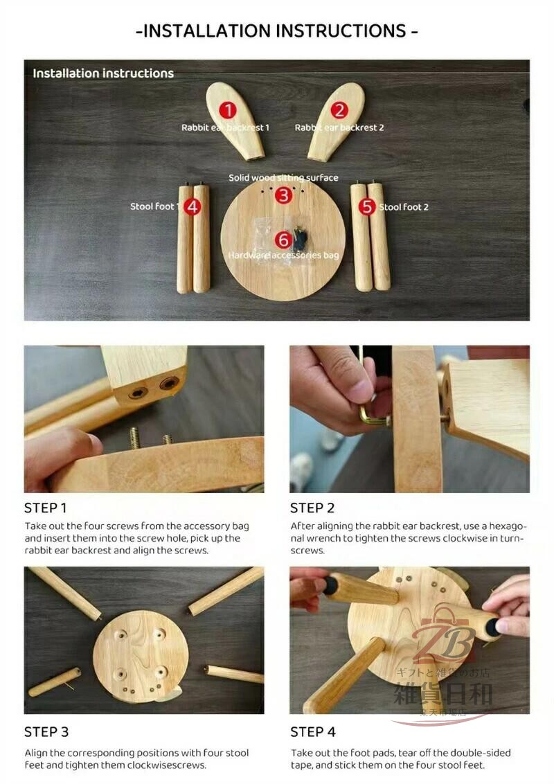 木製 キッズチェア うさぎ 耳付き ロ