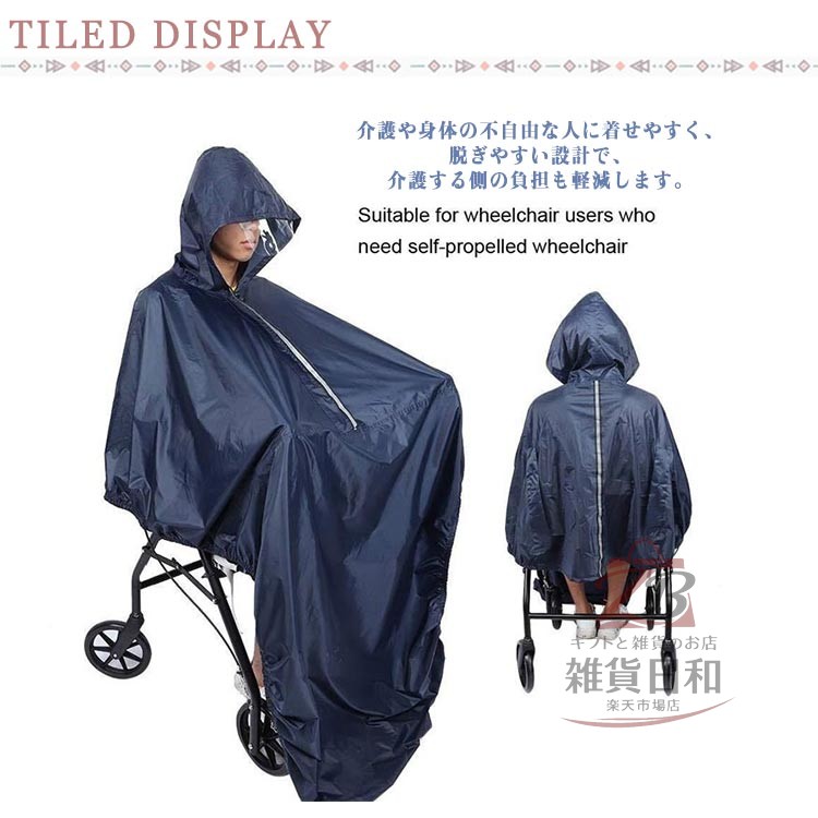 車いす用 レインコート ポンチョ 透明 ブルー ネイビー