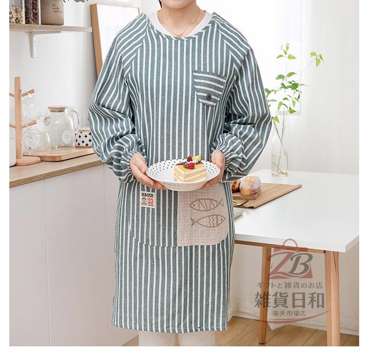 割烹着 ロング丈 リブ袖 かぶり型 シ 配膳用品 キッチンファブリック エプロン 三角巾 割烹着 スモック 新登場! グリーン グレー レッド ブルー