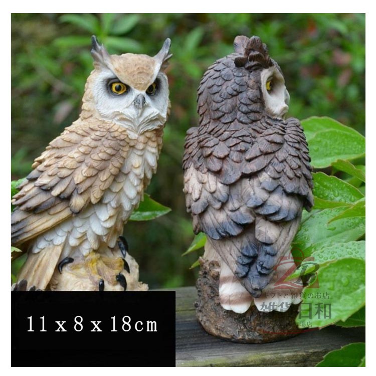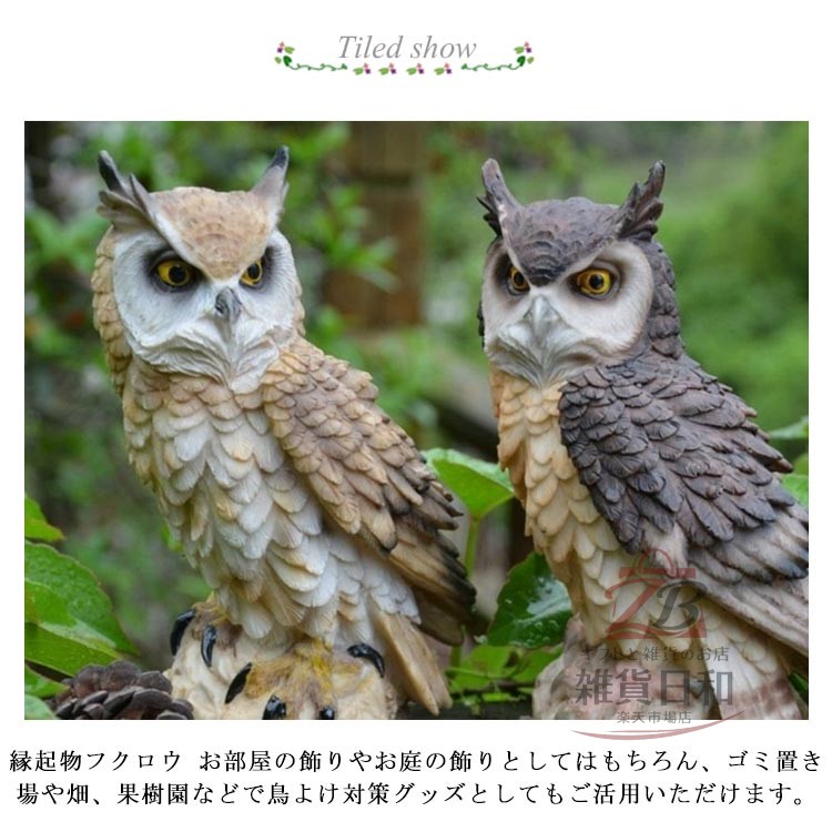 縁起物 フクロウ オブジェ 鳥よけ 屋 ベージュ グレー