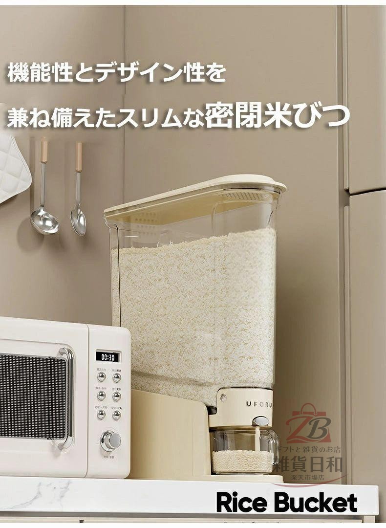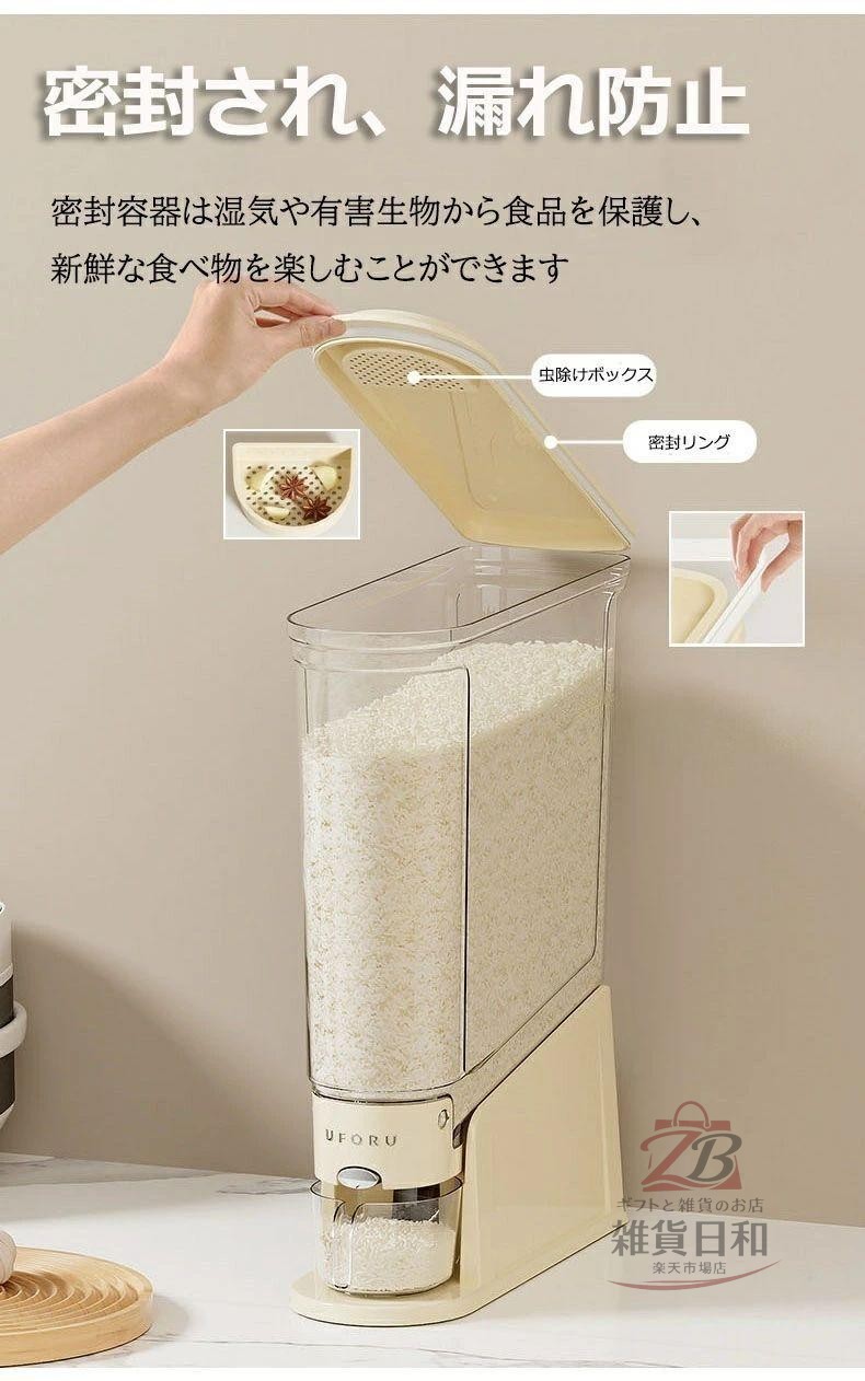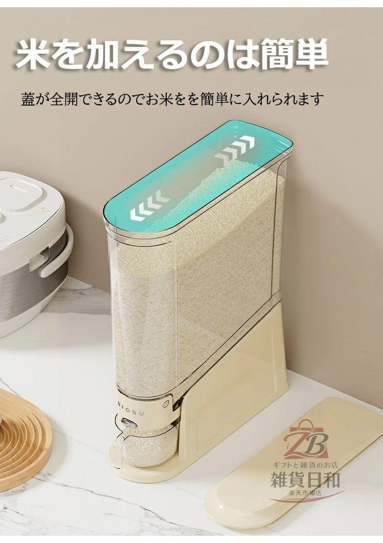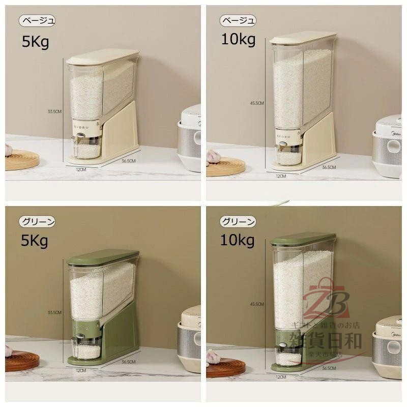 スリム米びつ 密閉容器 大容量 5kg 保存容器 調味料入れ 米びつ 特集 ベージュ グリーン 5KG 10KG
