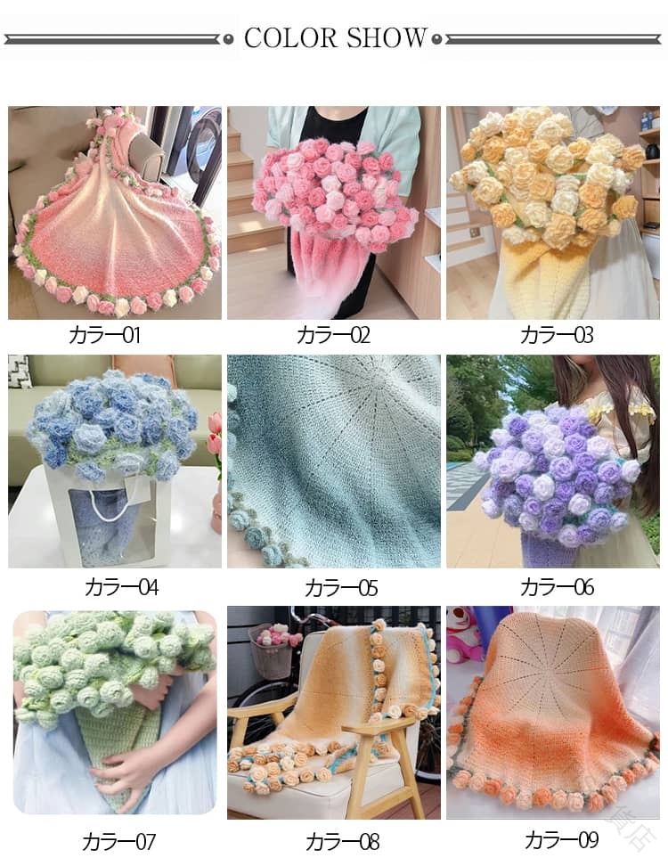 かぎ針編みキット セット 花束ブランケ 寝具 毛布 ブランケット 豊富 カラー1 カラー2 カラー3 カラー4 カラー5 カラー6 カラー7 カラー9