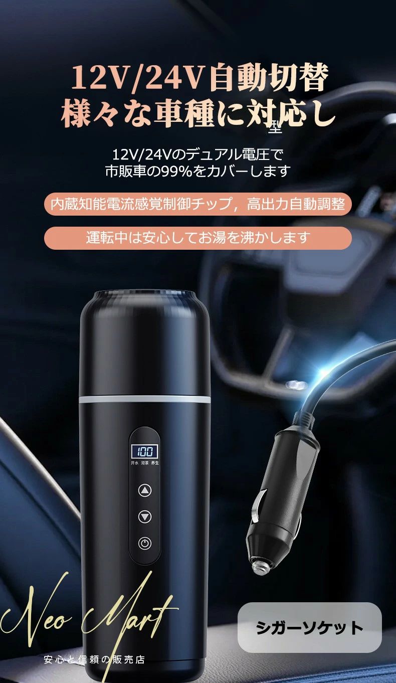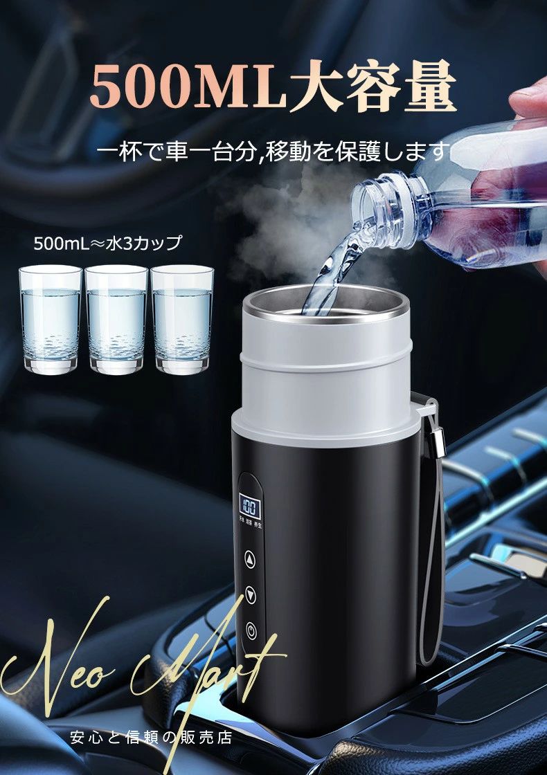 車載電気ケトル 持ち運び 電気ケトル 携帯 500ml DC12V小型車 24V トラック兼用 自動加熱 湯沸し器 ポータブルケトル 316ステンレ 保温
