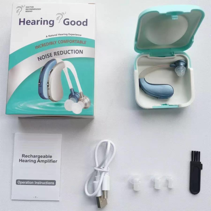 集音器 耳掛け式 高齢者 USB充電式 シャンパン ブルー