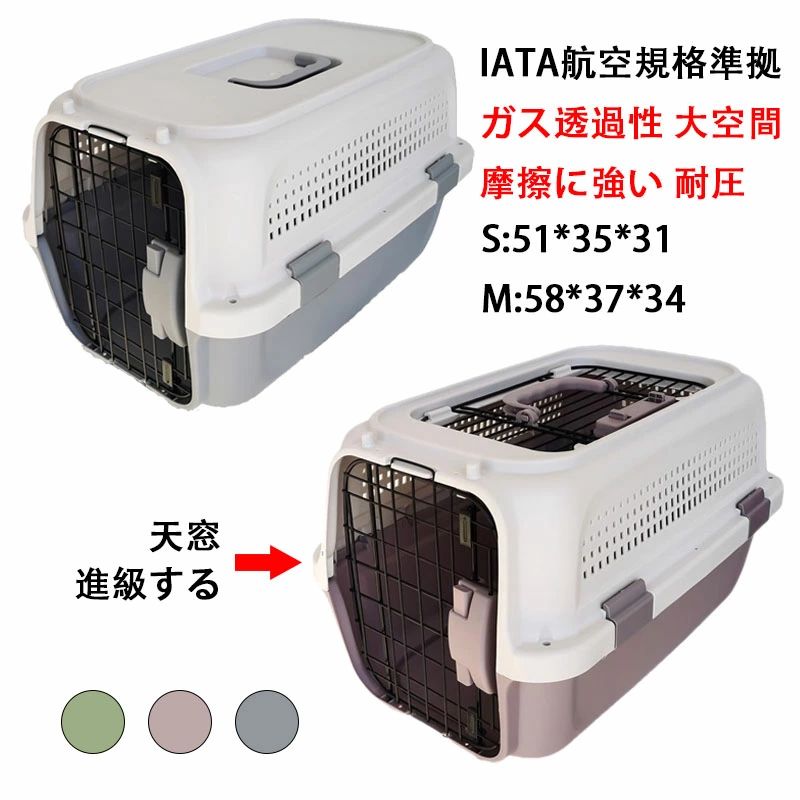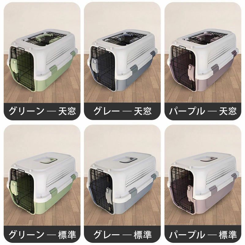犬 キャリーケース ダブルドア ペット グリーン グレー パープル 標準S:50*34*30 標準M:57*37*33 天窓S:50*34*30 天窓M:57*37*33