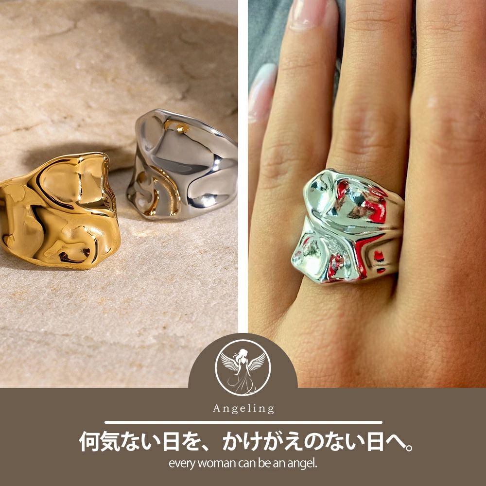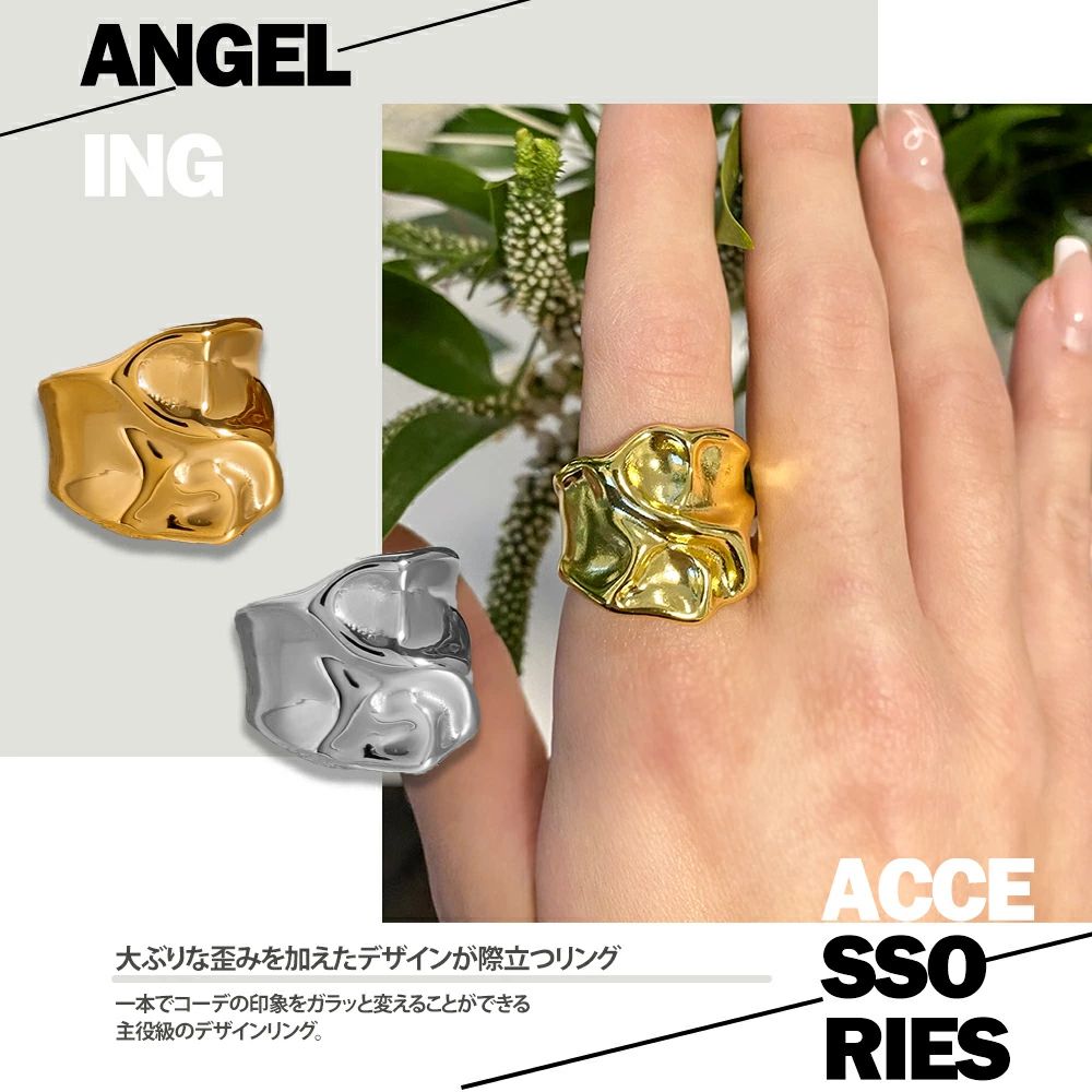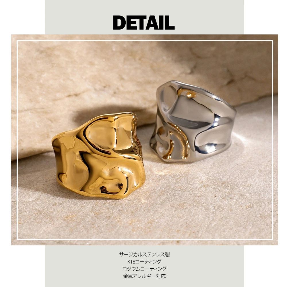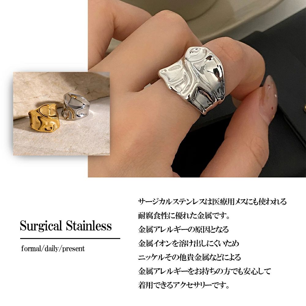 リング モード おしゃれ 重ね付け 歪み シルバー ゴールド 金属アレルギー対応 サージカルステンレス製 ワイドリング 大きめ ごつめ レディース 幅広