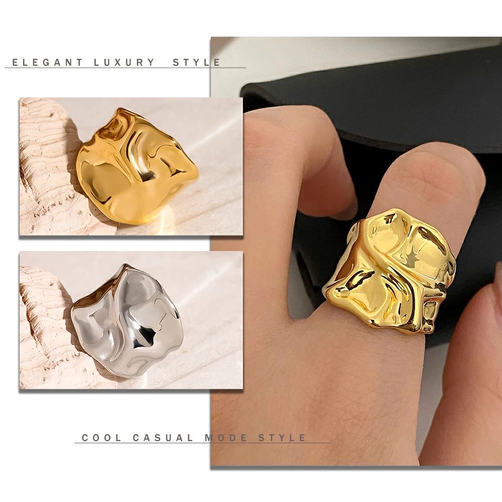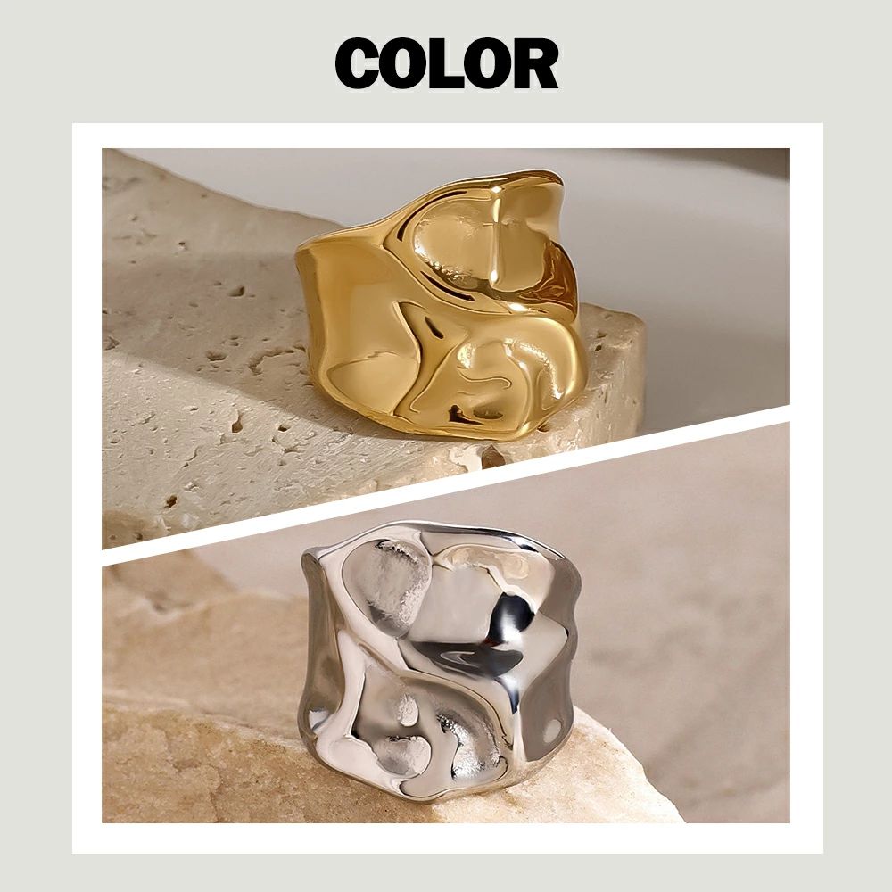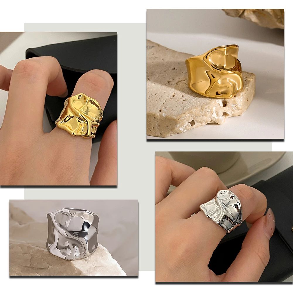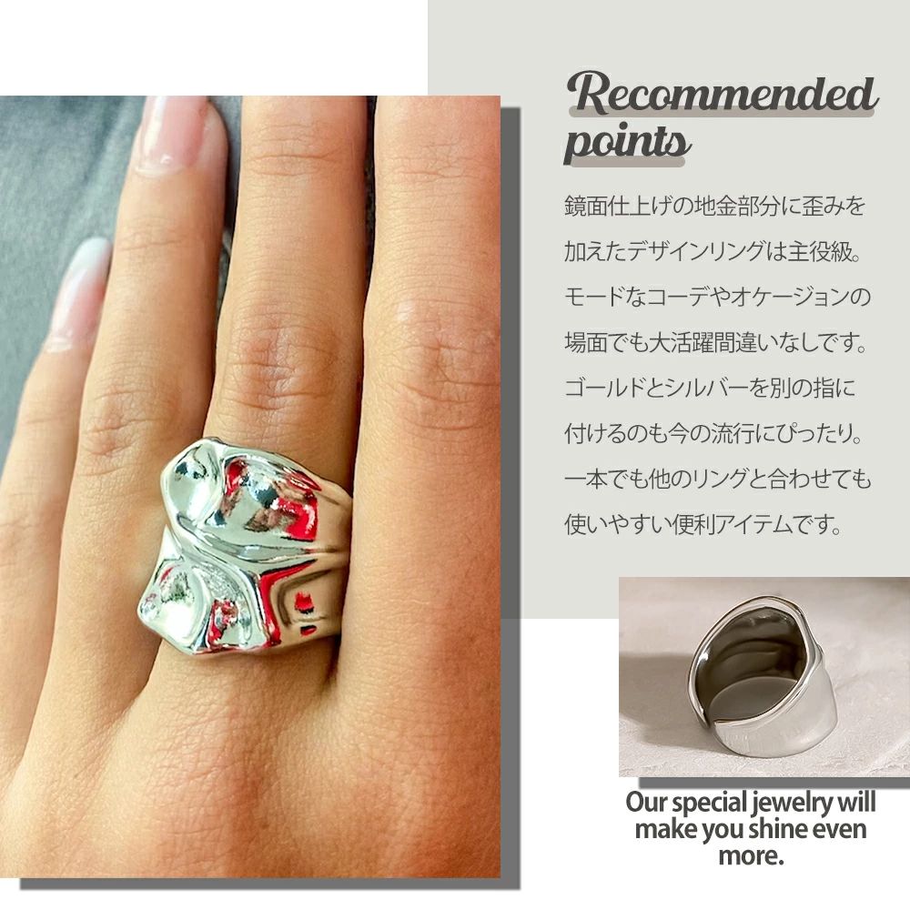 リング モード おしゃれ 重ね付け 歪み シルバー ゴールド 金属アレルギー対応 サージカルステンレス製 ワイドリング 大きめ ごつめ レディース 幅広
