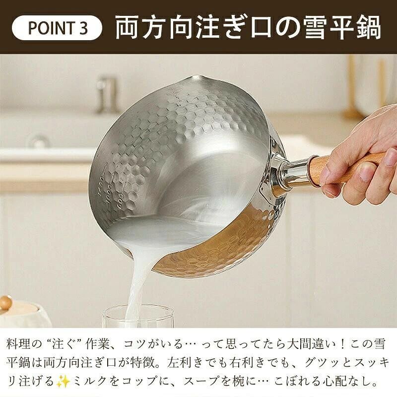 ステンレス製 雪平鍋 片手鍋 両側注ぎ 18cm 20cm 22cm