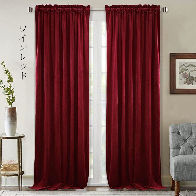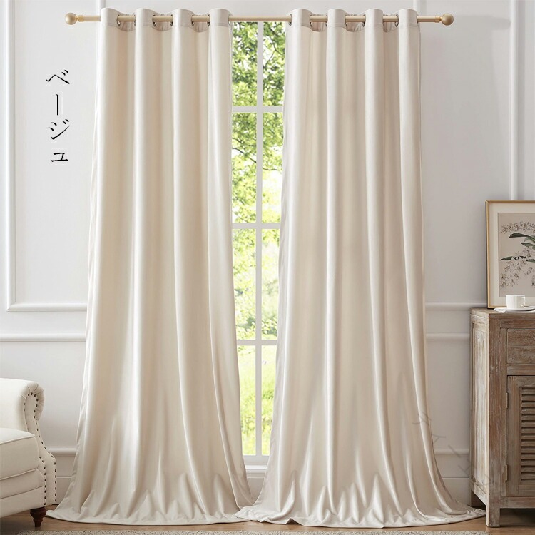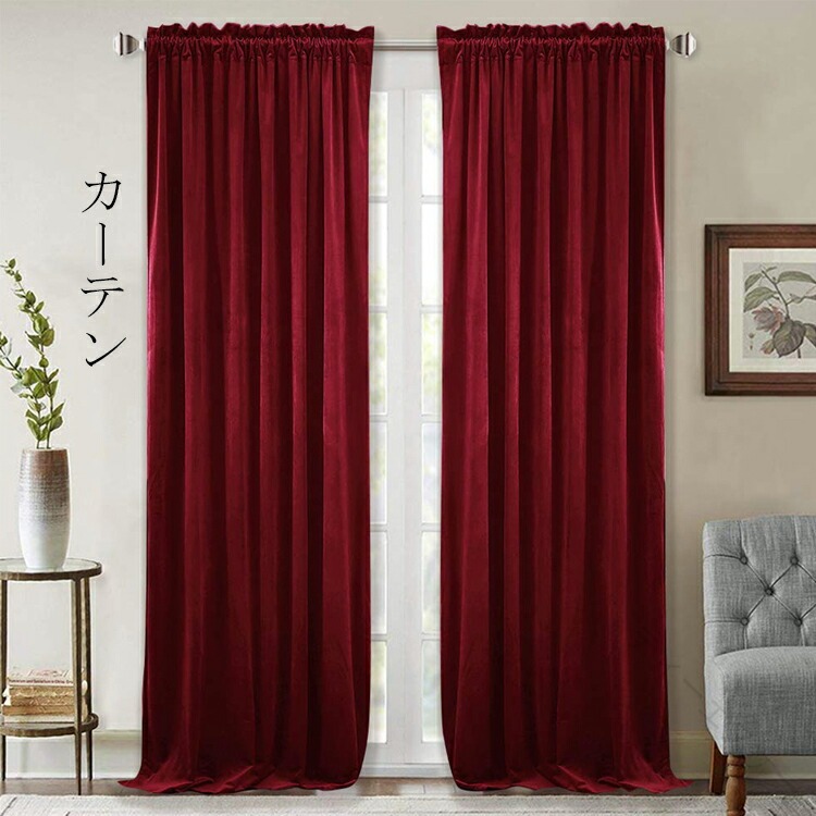 カーテン 遮光 遮熱 保温 UVカット ロッドポケット式 突っ張り棒に通すタイプ ワインレッド ベージュ ゴールド イエロー ブルー ブラック グリーン