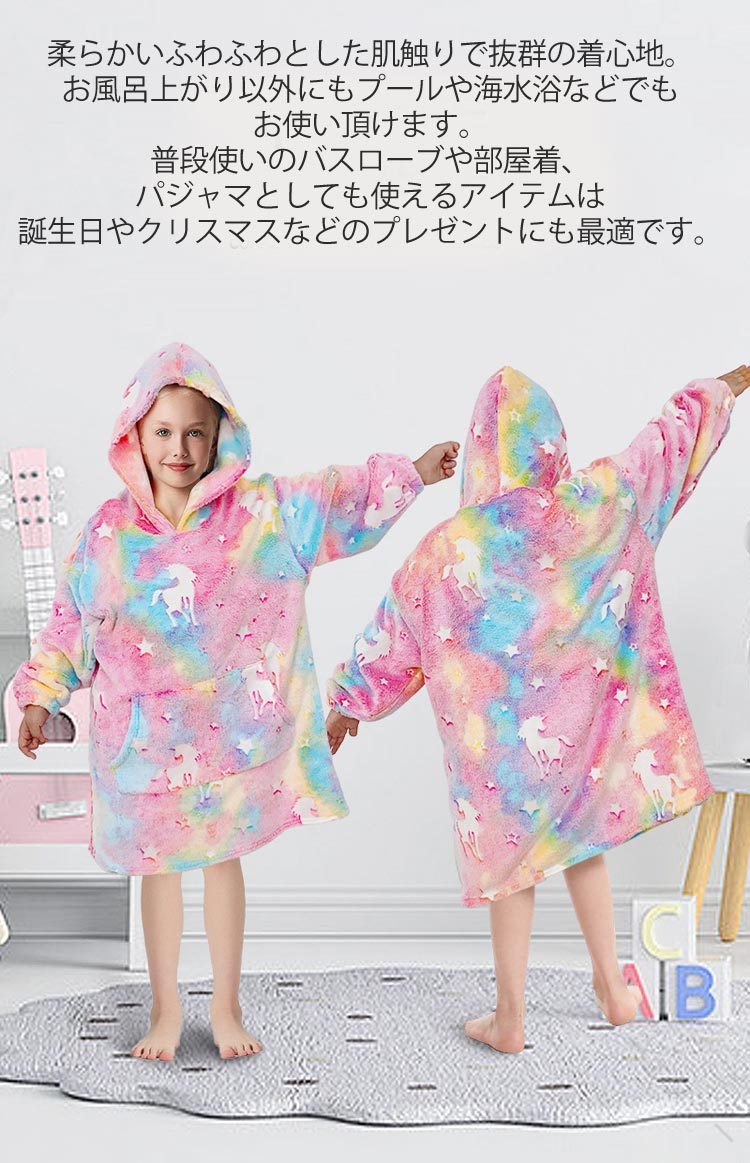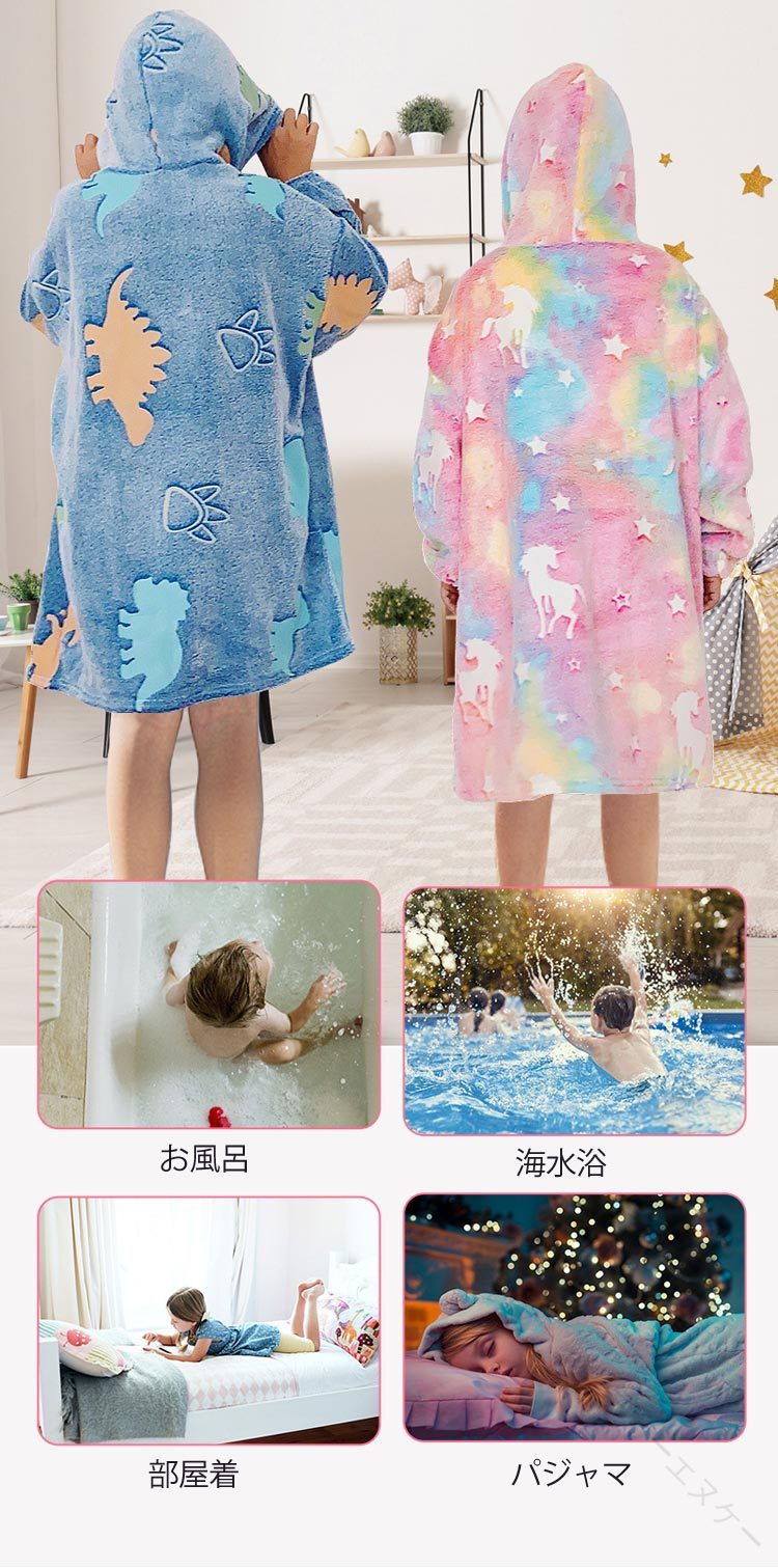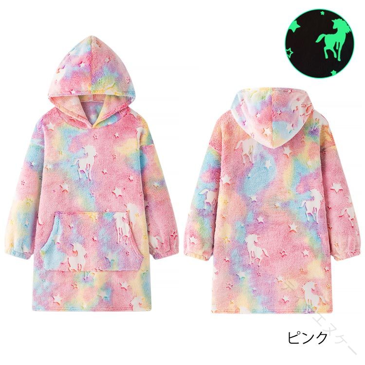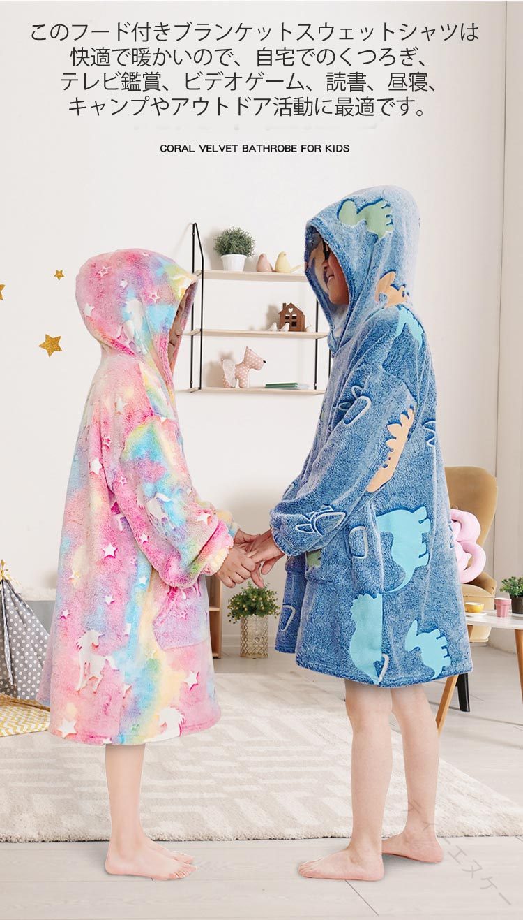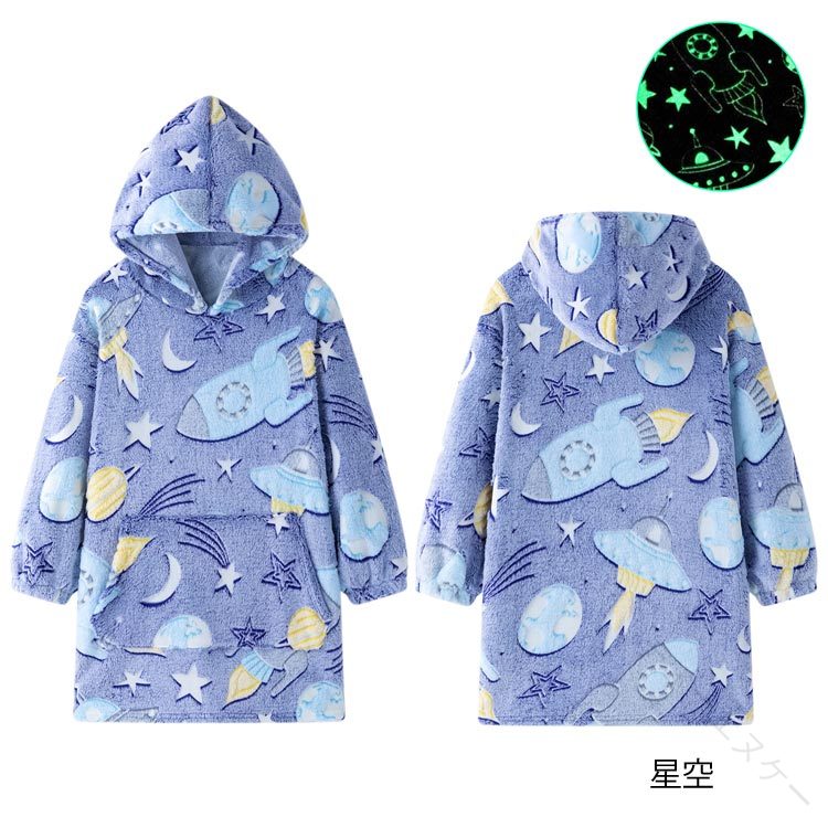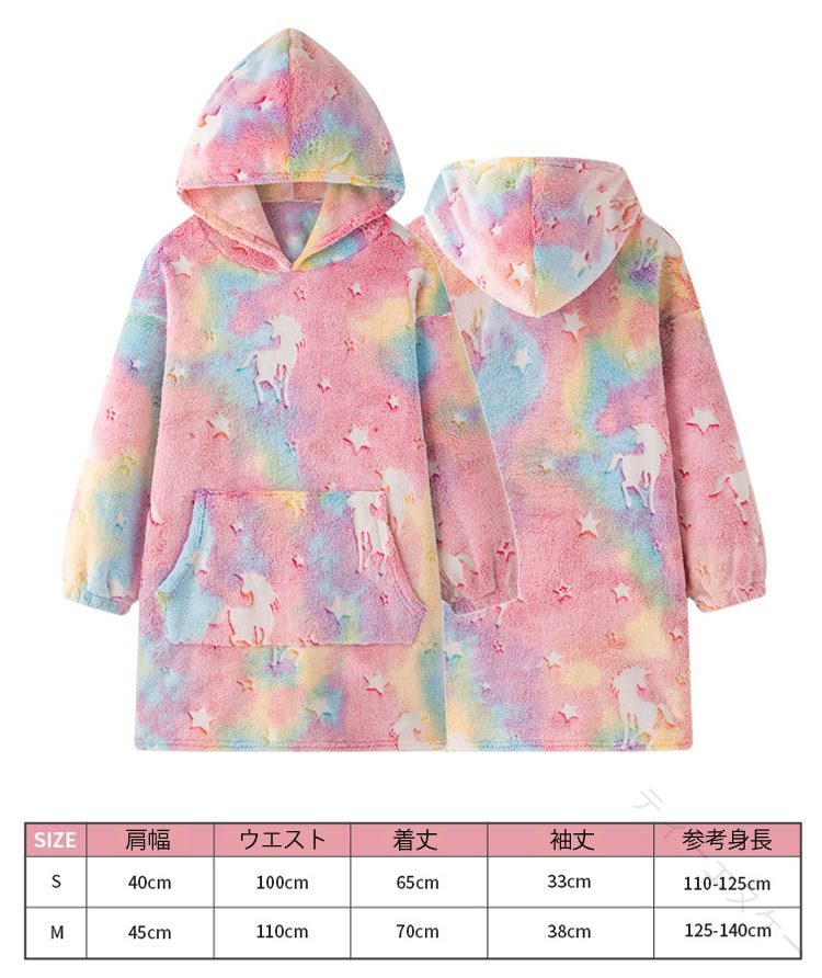 着る 毛布 フード付 ロングパーカー インテリア 寝具 収納 人気 ピンク パープル 恐竜柄 星空 S M