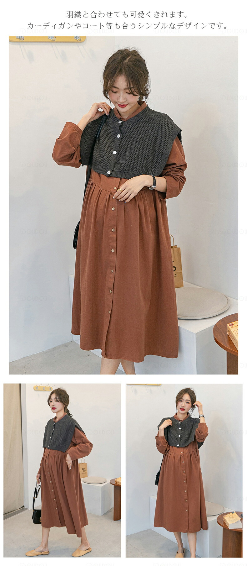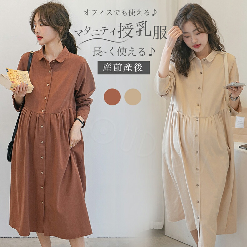 マタニティ ワンピース 秋冬 オフィス マタニティ ママ マタニティウエア 授乳服 ワンピース 通販 ブラウン エクリュ