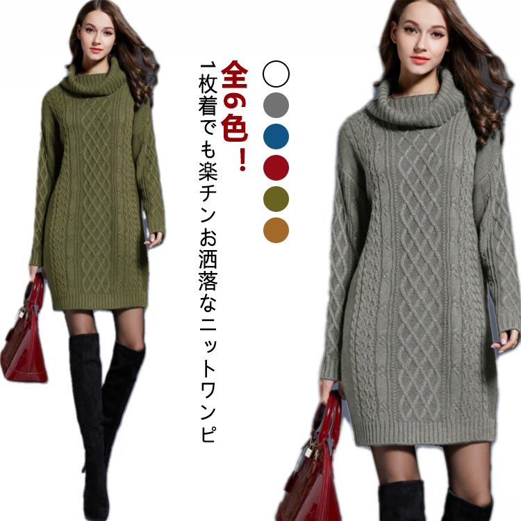 ~4 ハイネック ロングニット ニットワンピ 着瘦せ 暖かい 重ね着