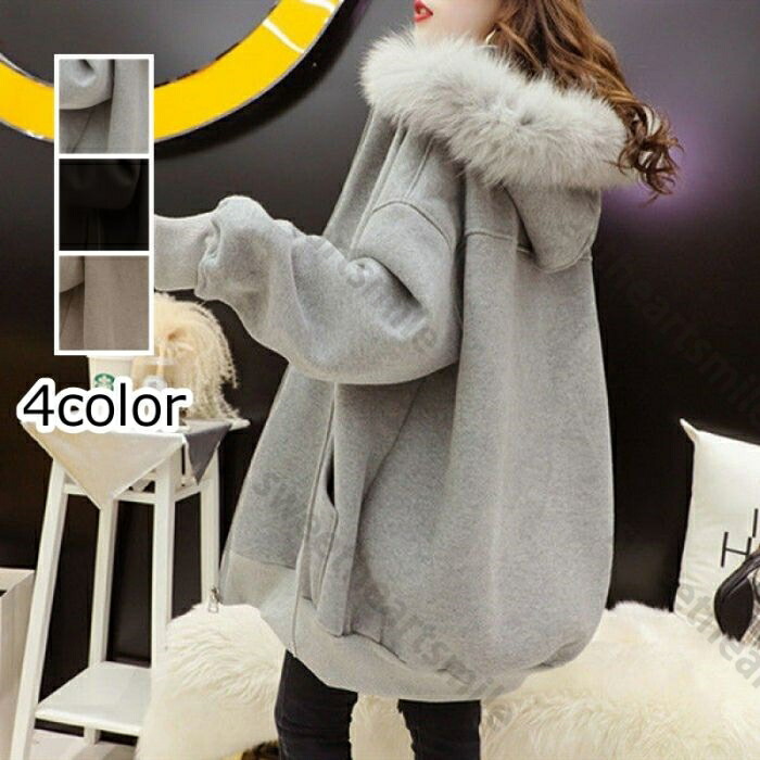 パーカー 裏起毛 レディース ジッパー ファーフード付き コート 厚手 秋冬 アウター 防寒 ゆったり