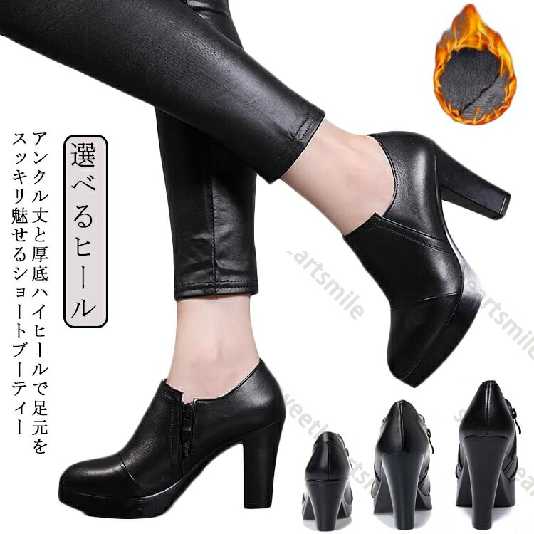 レディース ブーティ ブーツ 6cmヒール ショートブーツ 疲れにくい 選べるヒール サイドファスナー 11cmヒール アーモンドトゥ アンクルブーツ 履きやすい ハイヒール 裏 歩きやすい