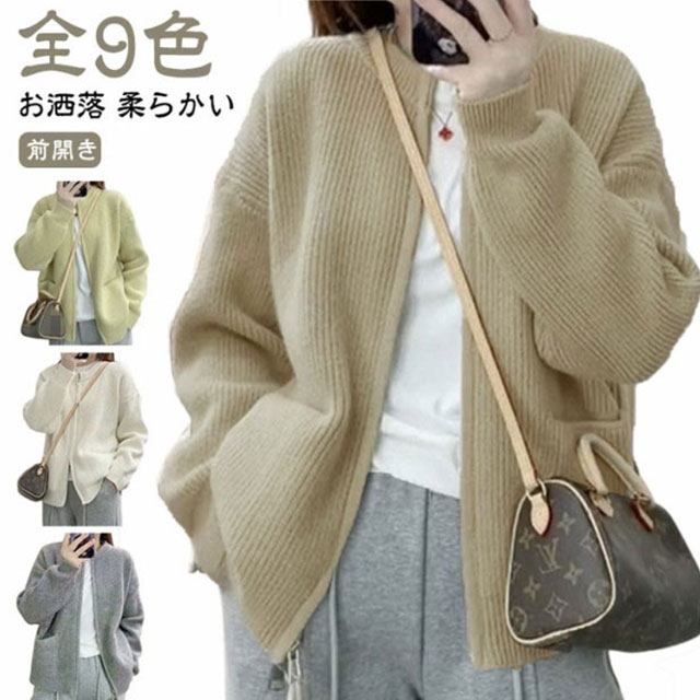 丸首 ファスナー ニットカーディガン 韓国 ファッション カジュアル きれいめ 大人 可愛い 送料無料