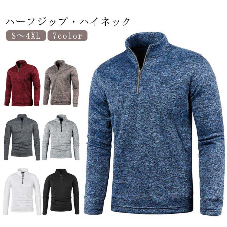 ゴルフ ポロシャツ 長袖 秋冬 モックネックシャツ ゴルフウェア メンズ ハーフジップ トレーナー ハイネックTシャツ 無地 トップス スポーツウェア 秋服 春 大きいサイズ 父の日 紳士服 おしゃれ