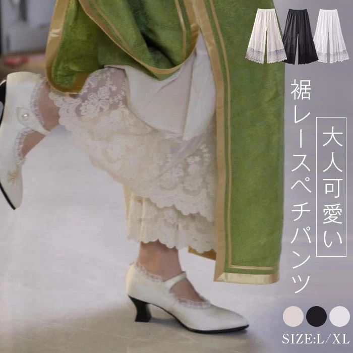 ペチパンツ レース レディース ペチコート ボトムス ワイド 下着 かわいい レイヤード ガウチョ シンプル インナー ナチュラル ウエストゴム 綿 森ガール ゆったり カジュアル コットン