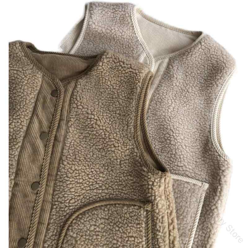 ボアベスト メンズ コーデュロイ素材 ウール混 レトロデザイン ヨーロッパ風 冬用 厚手 暖かいリバーシブル アウター ノースリーブ ジャケット 大きいサイズ 茶色 オフホワイト スタンドカラー