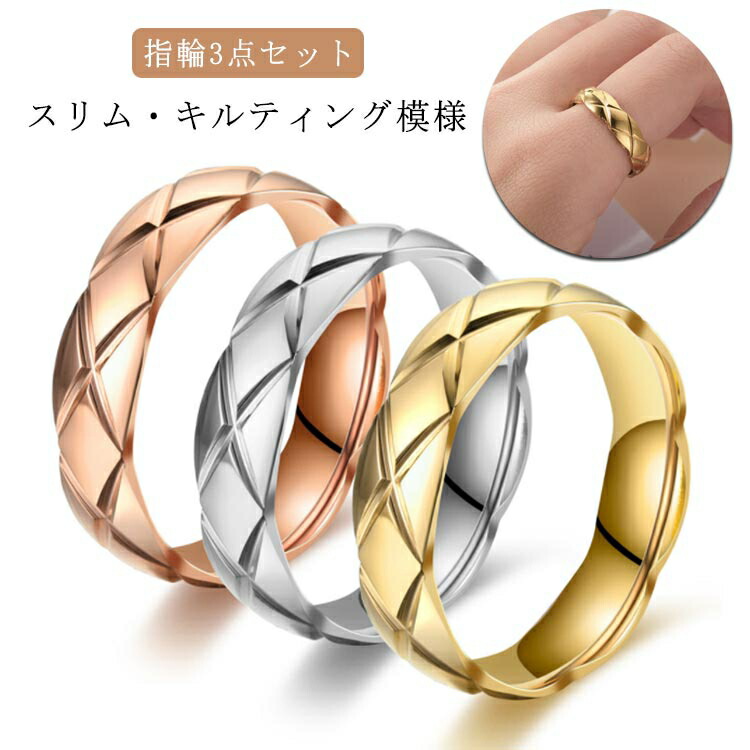 シルバー キルティング リング ステンレス 指輪 ピンクゴールド 金属アレルギー 重ね付け ゴールド k18 仕上 スリム 対応 シンプル ジュエリー アクサセリー ニッケルフリー