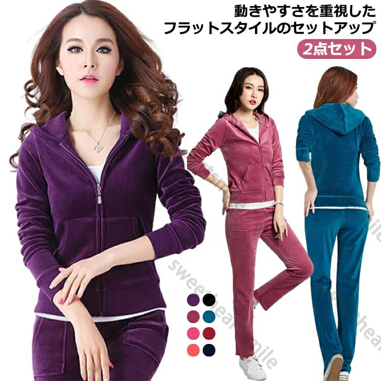 レディース 2点セット レディース パンツ トップス セットアップ パーカー ルームウェア 運動着 ベロア