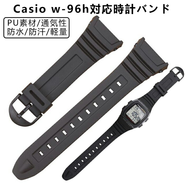 Casio G-Shock W-96H対応 交換用バンド カシオ交換用腕時計ベルトバンド PU素材 時計バンド 防水 運動 交換ベルト ベルト 防汗 軽量 時計ベルト調整簡単 通気性