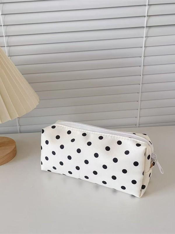 化粧ポーチ ドット柄 水玉 ペンケース大容量 収納ポーチ小物入れマルチポーチ レトロナチュラルシンプルベーシックスタンダード定番 筆箱文房具