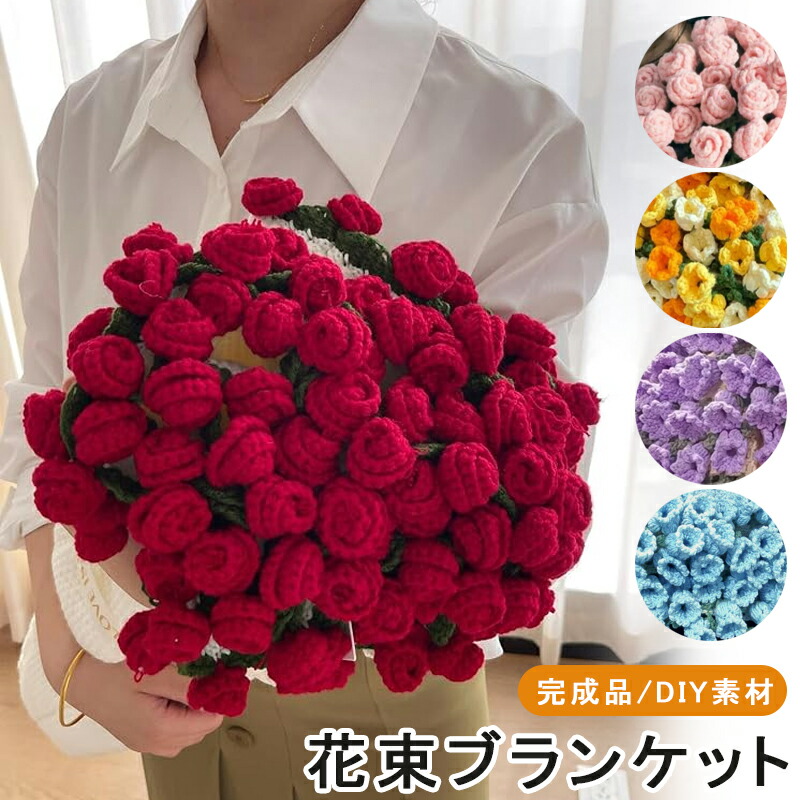 花束ブランケット ブーケブランケット マジックフラワーブランケット かぎ針編み 洗える DIYキット 完成品 毛布 ニット 手編み花 手編みフラワーデザイン 誕生日 母の日ギフト インス 恋人