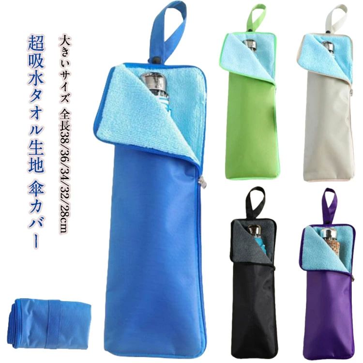 レ 吸水ポーチ 傘入れ 傘ケース 折りたたみ 超吸水タオル生地 折り畳み傘 折り畳み傘カバー 傘袋 軽量 傘カバー 38cm 吸水 防水
