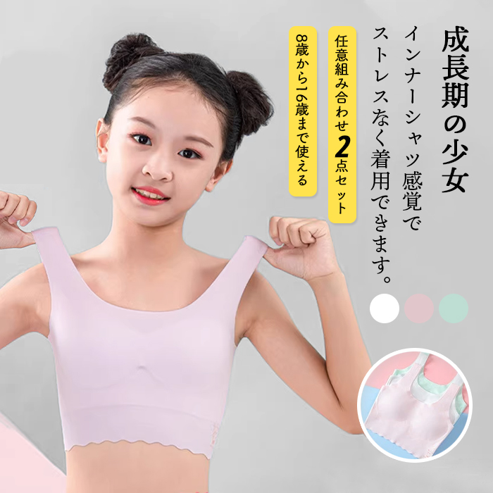 レビュー評価4.65 キッズ インナー ブラトップ ブラ ブラジャー 女の子 少女ブラ スポーツブラ パッド入り ヨガ ジム カップ付き 2枚セット ジュニアブラ 長め 子供用 ダンス ファーストブラ