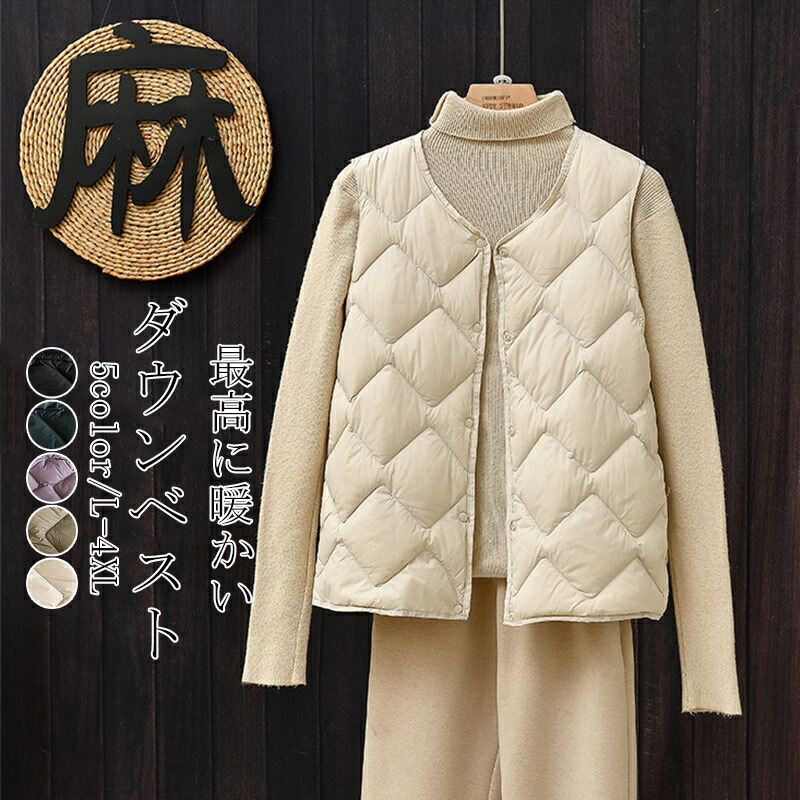 ダウンベスト アウター ジレ あったか コート 防寒 ベスト 暖かい ダウンベストレディース ロング コンパクト スナップ ダウン フェザー 軽量 ライトダウン 厚手 ポケッタブル インナーダウ 秋冬