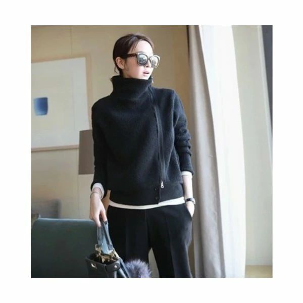 春スタイル 上質ニット タートルネック 前チャック ニットカーディガンにも ブラックS~2XLレディースファッション ニット セーター トップス