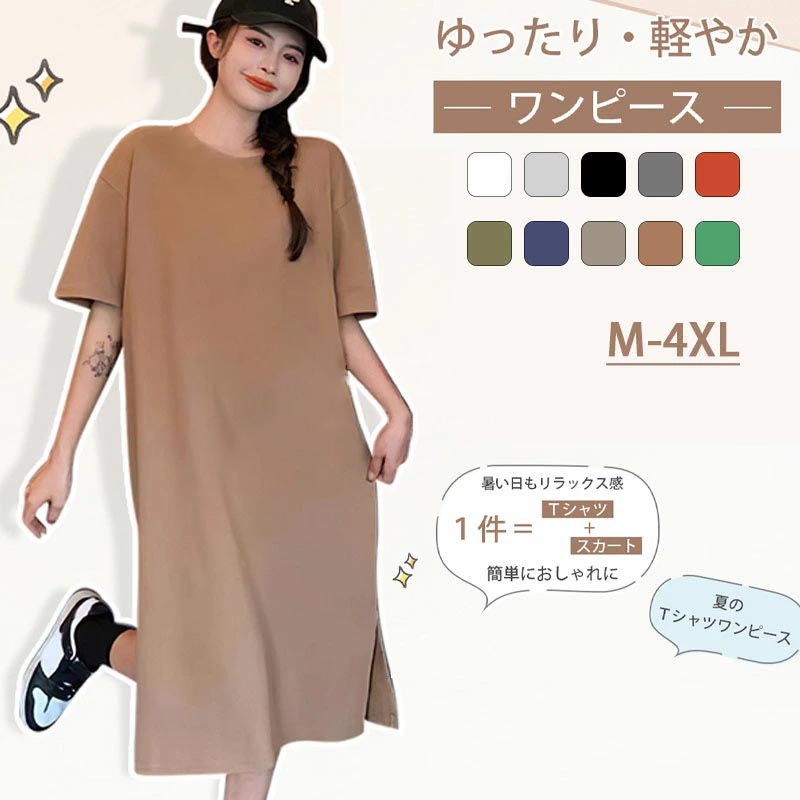 ワンピース レディース tシャツ 春夏ゆったり Tシャツワンピース カジュアル 着痩せ ドレス 10色入 体型カバー おしゃれ シンプル 通気性 薄手 半袖ゆったり 大きいサイズ マ 無地