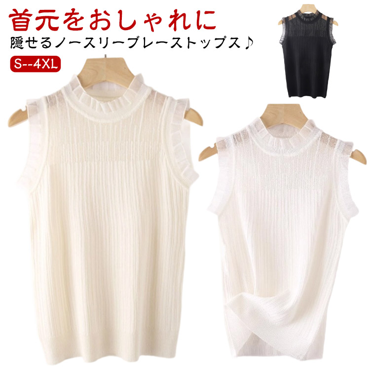 春夏のレイヤードコーデにお勧め♪フリル襟インナータンクトップ レース タンクトップ レディース インナー トップス ノースリーブ きれいめ 重ね着 レイヤード ニット