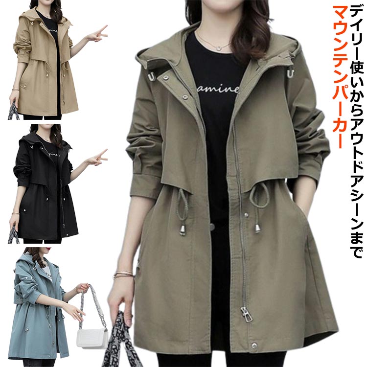 パーカー レディース コート ブルゾン アウター ジャケット 羽織り マウンテンパーカー 長袖 フード付き ライトブルゾン ジャンパー ライトアウター スプリングコート 通学 カジュアル シンプ 通勤