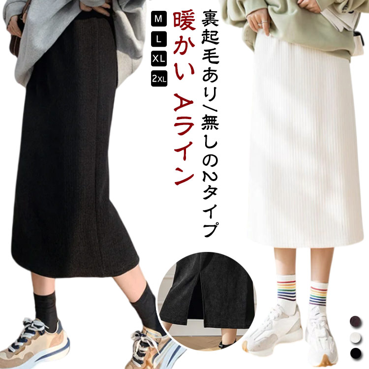 レディース 無地 裏起毛スカート Aライン ロングスカート 裏起毛あり 無しの2タイプ 暖かい コーデュロイ タイトスカート 秋冬 コーデュロイスカート あったか 裏起毛 スカ スリット