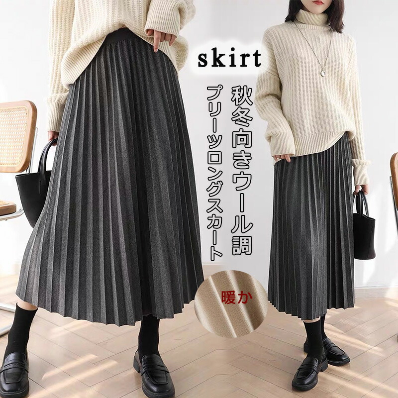 プリーツスカート 秋冬 ウール調 ロングスカート プリーツ マキシスカート ライン ロンスカ 無地 冬 ロング丈 体型カバー ゆったり ハイウエスト 秋 冬 フレアスカート